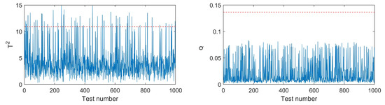The anomaly detector is trained by analyzing the distribution of and Q computed by the historical concentration data of k time points. Because the distribution of the concentration may not be Gaussian in the strict sense, the probability density functions (PDFs) of these two indices are estimated directly through Kernel Density Distribution (KDE). The upper control limits and can be obtained by and , with