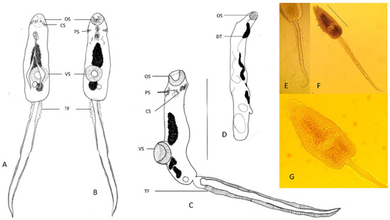 23. Olson, P.; Cribb, T.; Tkach, V.; Bray, R.; Littlewood, D. Phylogeny and classification of the Digenea (Platyhelminthes: Trematoda). Int. J. Parasitol. 2003, 33, 733–755. [Google Scholar] [CrossRef]