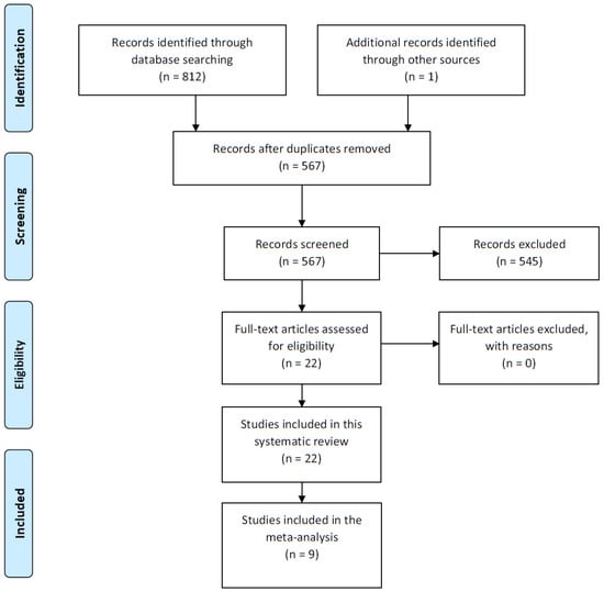 Our search identified 812 articles in English, Spanish, Portuguese or French. One additional article was identified through reviewing the references of included studies. After the removal of 246 duplicates, 22 of the 566 articles included in the title–abstract screening were included in the review [2,7,8,10,23,24,25,26,27,28,29,30,31,32,33,34,35,36,37,38,39]. No full texts were excluded. Data were extracted from the 22 eligible articles, which corresponded to 20 studies. Two articles included in this review were performed with children from the same study from different time points. Characteristics of the 22 articles included in the systematic review are described in Table 1.