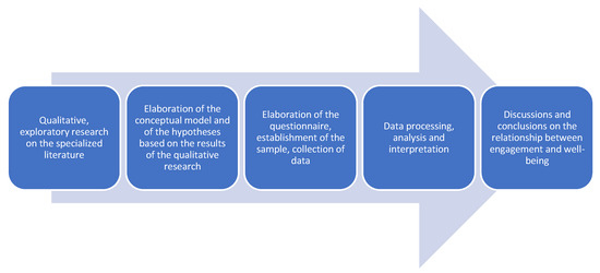 In this research, we adopted a philosophy of pragmatism, combining qualitative research with quantitative analysis. The qualitative research was exploratory and was carried out on the specialized literature, being the basis for creating the theoretical-conceptual model. In the empirical study, we used quantitative research methods, and the hypotheses were formulated based on qualitative research and were tested based on the theoretical-conceptual model. Figure 1 illustrates the research process in our paper.