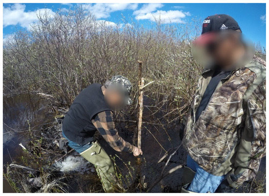 Since time immemorial, the populations of beavers have been maintained through Indigenous harvesting practices [23,24], and, more recently (i.e., the 1600s), the sale of the pelts to the Hudson’s Bay Company [13,25]. However, beaver harvesting, once an integral part of the Omushkego Cree culture, has declined significantly, due to the changes stemming from colonization, environmental change, and technological advances [11,24,26]. This decline has caused an increase in the population of beavers, which has led to more frequently flooding events, risks to water quality and, overall, negative impacts on communities and the environment [17,23]. Addressing these environmental issues requires cooperation between the different levels of Canadian government and Indigenous knowledge holders to effectively deal with these complex environmental problems [27,28,29]. To that end, there is an opportunity for the revitalization of subsistence activities, such as beaver harvesting, to address in part the local flooding issue, while also providing other health and well-being benefits (e.g., social, cultural) for the harvesters.