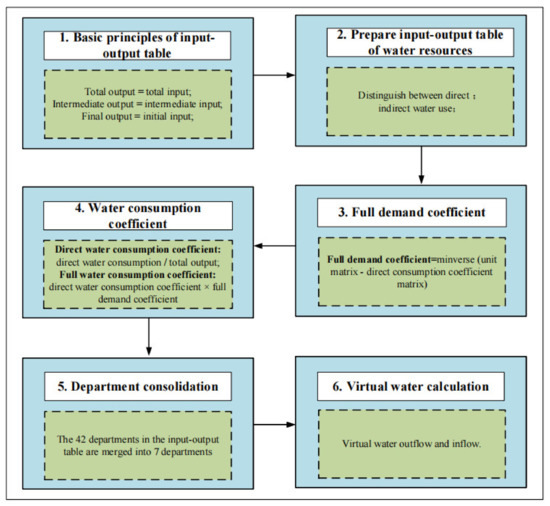 The rest of the article is structured as follows: Section 2 introduces the research field, including the results and a virtual water analysis of an accounting framework regarding multi-regional input–output data and data sources pertaining to the Yellow River Basin. Section 3 presents the results and analysis. Section 4 puts forward a discussion, and suggestions are made in the conclusion.