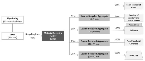 - Al-Ghamdi, O.; Makhdom, B.; Al-Faraj, M.; Al-Akhras, N.; Ahmed, I.M. Management and Recycling of Construction and Demolition Waste in Kingdom of Saudi Arabia. Int. J. Innov. Res. Sci. Eng. Technol. 2017, 6, 3643–3654. [Google Scholar]