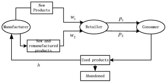 - Assumption that the manufacturer conducts rigorous testing of the used products recycled after the first cycle to ensure that the recycled used products have a certain utilization value and can be processed into remanufactured products in the second cycle [59].
