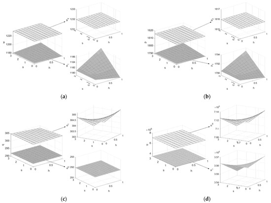 - Assuming , , , , , , , , , , letting and be the independent variables (, , at this point ), draw graphs of the variation of the decision variables and system members’ profits with and , as shown in Figure 4.