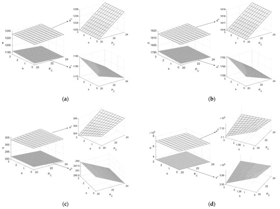 - Assuming , , , , , , , , , , letting and be the independent variables (, , at this point ), draw graphs of the variation of the decision variables and system members’ profits with and , as shown in Figure 2.