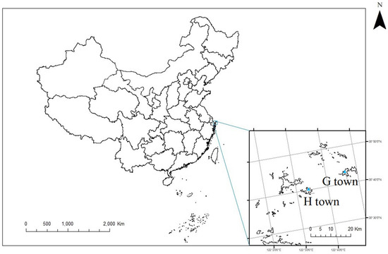 The study sites of Huang Long Town (H town) and Gou Qi Town (G town) in Shengsi County.