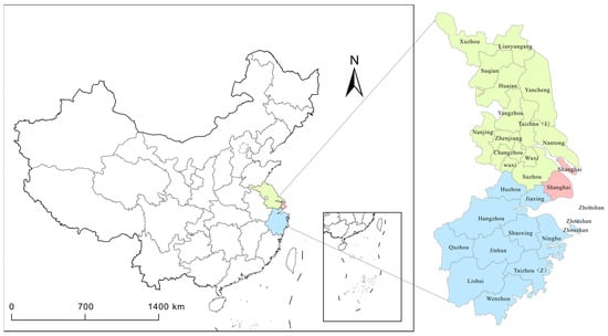With social and economic development, the planning scope of the YRD region will witness further changes. The core areas of the study are the provinces of Jiangsu, Zhejiang, and Shanghai. Jiangsu Province comprises 13 cities: Nanjing, Wuxi, Xuzhou, Changzhou, Suzhou, Nantong, Huaian, Yancheng, Yangzhou, Zhenjiang, Taizhou, Suqian, and Lianyungang; Zhejiang Province comprises 11 prefecture-level cities: Hangzhou, Ningbo, Wenzhou, Jiaxing, Huzhou, Shaoxing, Jinhua, Quzhou, Zhoushan, Taizhou, and Lishui; Shanghai Province covers an administrative area of approximately 217,900 km2. In 2019, the total number of patents granted in this region reached 1,076,994, which significantly exceeded those of other regions in China (Figure 1). The study area is a region with the highest innovation capacities in China and is a pioneer in and a model of national ecological environmental planning and management. At present, all cities in the YRD are included in the scope of air quality monitoring, with the total number of air quality monitoring stations being 162. However, energy consumption is high owing to the relatively developed industries, and environmental pollution continues to be a problem.