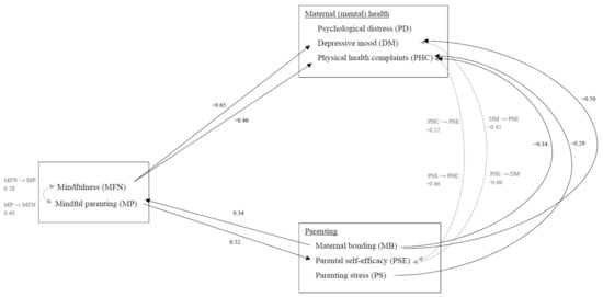 - Fernandes, D.V.; Canavarro, M.C.; Moreira, H. The role of mothers’ self-compassion on mother–infant bonding during the COVID-19 pandemic: A longitudinal study exploring the mediating role of mindful parenting and parenting stress in the postpartum period. Infant Ment. Health J. 2021, 42, 621–635. [Google Scholar] [CrossRef]