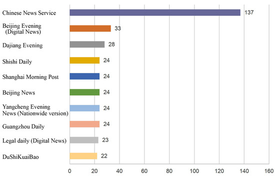 The most represented media sources for the collected news reports (N = 2886).