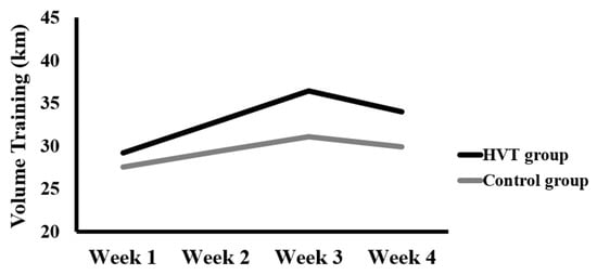 Volume training during four weeks of intervention period in both groups. HVT: High volume training.