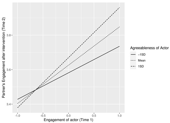 Interaction effect between an actors’ engagement and their agreeableness on their partners’ engagement.