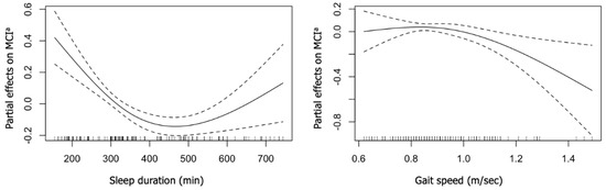 The main strength of this study is that, to the best of our knowledge, this is the first study to use the GAM model to evaluate the linear and nonlinear associations of sleep duration and gait speed and the risk of developing MCI in community-dwelling older adults.