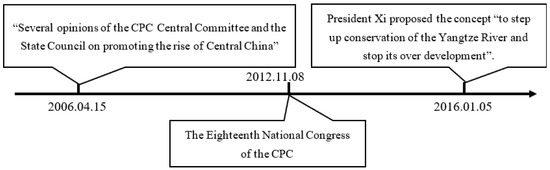 From 2006 to 2018, there were three landmark events that changed the policy environment for industrial development in Central China. We list these three important events on the timeline of Figure 1. On 15 April 2006, the central government issued “Several Opinions of The CPC Central Committee and The State Council on Promoting the Rise of Central China”, marking how the “Rise of Central China” has officially become a national strategy. Before this opinion was issued, the central government’s economic focus was on the eastern coastal region and the western inland region, leading to the lack of policy support for industrial development in Central China and further causing policy environment for industrial development in Central China to be relatively unpleasant. In order to stimulate economic growth of Central China and balance regional development, “encouraging policies” have gradually increased since 2006 in this region. The central government has allocated special funds every year to implement the strategy of the “Rise of Central China” (After “Tax Sharing Reform”, only the central government in China has the authority to grant tax concessions. Specific preferential terms can be found in the “Two Comparative Implementation Policies” issued by the General Office of the State Council on 1 January 2007), given preferential tax and financial support to enterprises in Central China (Include the establishment of high-tech zones, bonded zones, free-trade zones, and other special zones in Central China for local governments to experiment economic stimulus policies), and given more autonomy to local governments to improve the policy environment for industrial development (According to the “13th Five Year Plan for Promoting the Rise of Central China” and annual reports of provincial and municipal governments in Central China). Local governments have introduced financial subsidies, preferential land-transfer prices, and better infrastructure to attract and cultivate industries. The contradiction between economic growth and environmental protection has become increasingly prominent, so the report of the 18th National Congress of the CPC in 2012 pointed out that we should “put the construction of ecological civilization in a prominent position”. Since then, the central government and local governments in Central China started to pay more attention to the “restrictive policy” of environmental regulation. The elimination of industries with high pollution and high energy consumption is emphasized in important planning and government plans. In 2016, president Xi held a symposium in Chongqing to promote the development of the Yangtze River Economic Belt. He proposed the concept “to step up conservation of the Yangtze River and stop its over development”. Four provinces in Central China are within the Yangtze River Economic Belt. Therefore, most cities in Central China will implement the concept of “ecological priority and green development”. “Restrictive policies” have been given unprecedented importance in Central China. For example, chemical enterprises located within 5 km along the Yangtze River will be forced to “move, transfer or close”. Theoretically, the policy environment in Central China after 2012 has not been very pleasant for enterprises. However, as mentioned above, the local government can also create a pleasant policy environment by giving implicit subsidies and relaxing environmental regulation after 2012. In the following, we quantitatively analyze the spatiotemporal variation of pleasantness of policy environment in Central China.