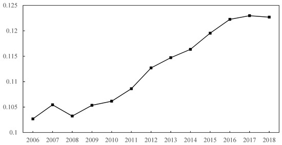 Si in Equation (6) is the composite index of policy environment. Table 1 shows the construction method of policy environment index, so m is 8 and n is 1040 in our paper. A higher direct investment and public-service level for a government can make the city more attractive to enterprises and talents, which are positive indicators; on the other hand, loose environmental regulation implies lower pollution-control cost, making cities more attractive to enterprises, so that environmental regulation is a negative indicator. Limited by data availability, the government’s direct investment is measured by general budget expenditure of government and fixed asset investment per unit of GDP. The level of public service is measured by the number of schools, hospitals, and libraries. Environmental regulation is measured by the reciprocal of pollution emission per unit of GDP; pollution emission refers to sulfur dioxide emission, industrial smoke emission, and industrial wastewater emission. Policy environment in this paper is expressed as POLEN; in our paper, POLEN is Si in Equation (6). A larger POLEN value implies more of a pleasant policy environment for industrial development.