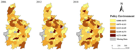 Spatial variation of policy Environment in Central China. Note: Built by the authors based on the data calculated through above method.