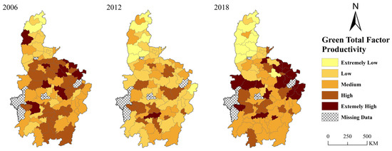 During this period, economic scale and growth rate of Central China have increased conspicuously, meaning that the decline of green total factor productivity is caused by the increase of pollution emissions. From the results, Central China excessively pursued economic goals, whereas it ignored environmental protection to some extent. Improving the pleasantness of the policy environment should have been “efficient administration” to attract talents and high-quality enterprises to promote industrial transformation and upgrading, but the governments were “captured” under the pressure of short-term economic growth, and then they increased the risks of pollution. As can be seen from Figure 2, besides provincial capitals, the policy environment of a large number of ordinary prefecture-level cities has become more pleasant, in which governments’ intervention has a higher possibility to encourage the development of polluting industries for higher competition pressure and lower development endowments of these cities. In the future, environmental damage risks in ordinary prefecture-level cities in Central China are more likely to be caused by the behavior of local governments.