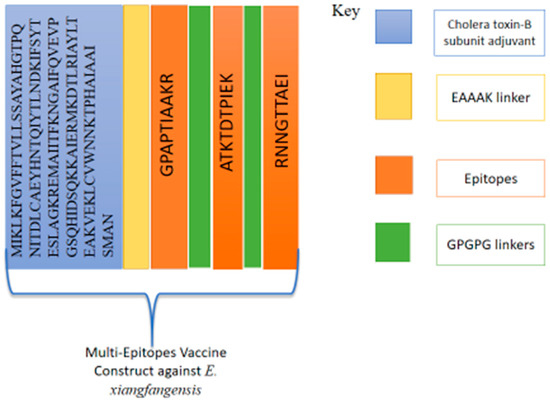 Schematic representation of multi-epitope vaccine construct for E. xiangfangensis.
