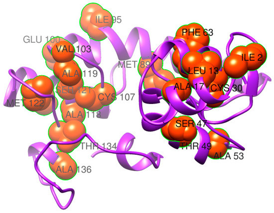- Pettersen, E.F.; Goddard, T.D.; Huang, C.C.; Couch, G.S.; Greenblatt, D.M.; Meng, E.C.; Ferrin, T.E. UCSF Chimera—A Visualization System for Exploratory Research and Analysis. J. Comput. Chem. 2004, 25, 1605–1612. [Google Scholar] [CrossRef] [PubMed] [Green Version]