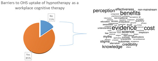 Nearly 85% of participants indicated that they perceived there would be barriers to the adoption of hypnotherapy for use by OHS services in their workplace (Figure 3).