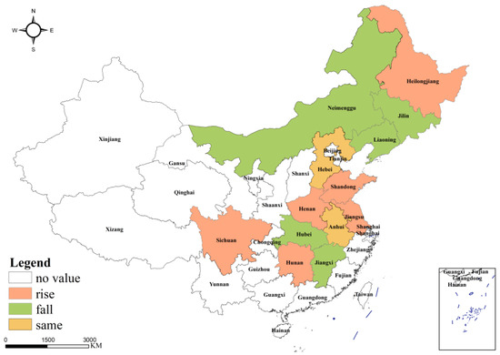 The ranking changes in grain production resource allocation efficiency (comprehensive technical efficiency) in the main grain-producing areas in China after adjustment.