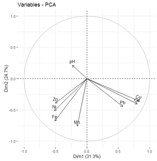 Two groups of elements clearly emerge from the study. The first one includes Pb, Cu and Cd, and they turned out to be statistically highly correlated (Figure 12). The second group of metals includes Zn, Ni, Fe, Mn which are a group of elements correlated with each other. More detailed values of correlations are given in Table 10.