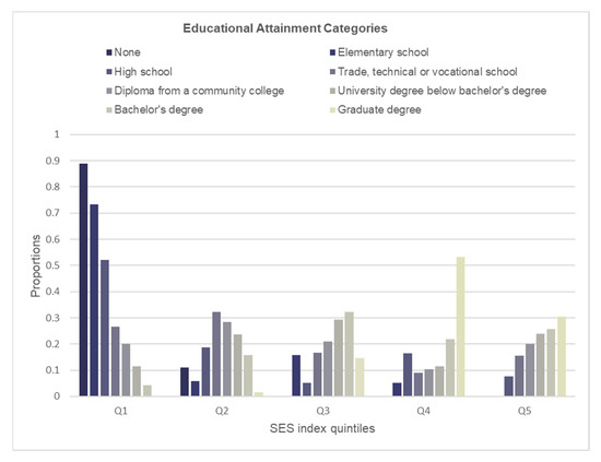 Distribution of educational attainment within each quintile of the SES index.