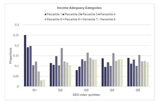 Distribution of income adequacy within each quintile of the SES index.