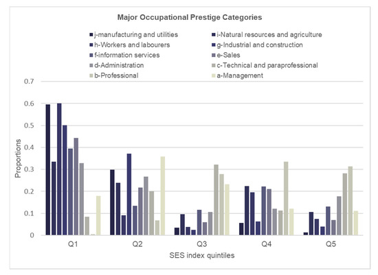 - Goyder, J.; Frank, K. A scale of occupational prestige in Canada, based on NOC major groups. Can. J. Sociol. 2007, 32, 63–83. [Google Scholar] [CrossRef]