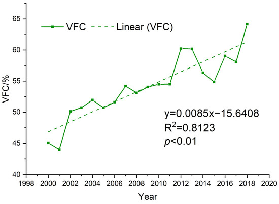 Temporal trends of VFC in the Loess Plateau from 2000 to2018.