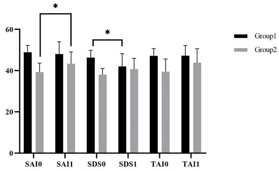 The scores of the anxiety and depression in Study 1. * p < 0.05.
