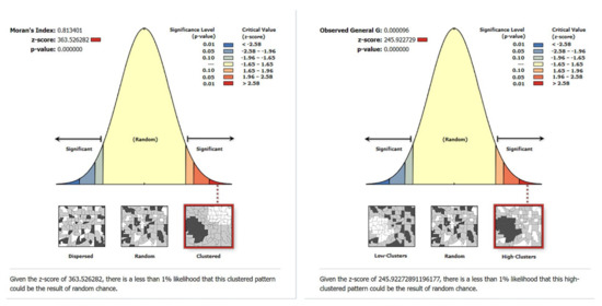 4.3. The Results of Global Autocorrelation Analysis