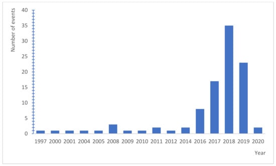 At the same time, the number of assessed claims was analysed for the year during which the adverse event occurred (Figure 3). It can be clearly seen that the highest number of cases concerned events which occurred in the last few years, that is 2018 (35%), 2019 (23%), and 2017 (17%). Sporadically, cases have concerned claims from much earlier (even from 1997). This is probably related to the growing awareness of patients and their families (knowledge of patient rights, issues of quality, and safety of care), as well as with the operation of province commissions for adverse events since 2012 (which in many cases enables assessing whether an adverse event has occurred or not more rapidly than in the courts). It should be kept in mind that the application has to be filed within a time limit of 1 year since the day on which the applicant has learned about the infection, bodily injury or disorder of health, or the patient’s death has occurred. This time limit may also not be longer than 3 years from the day on which the event has occurred. This type of information indicates clearly that over the last few years, a clear upwards trend can be noticed. The consequences of the higher number of proceedings for these kinds of crimes include, among others, the creation of special departments in regional prosecutor’s offices (since 2016) and the taking over of some of these cases by the offices of the district prosecutors. With these actions, the quality of procedures concerning medical errors has improved significantly. It may be thus expected that both the number and the value of awarded damages/compensation will be higher. Therefore, the burden on the healthcare system and on the entities which provide medical services will keep increasing.