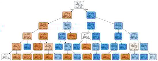 The study of Yang and Zhou [] explained how the different splitters would create a homogeneous dataset considered in the algorithm. In addition, the reduction of impurities would be evident upon the utilization of either gini or entropy []. In addition, the criterion of how the leaves would be split would be based on either choosing the best output or randomly. The consideration of tree depth would be necessary for generating the tree to reduce both overfitting and underfitting. Ong et al. [] discussed how having a lower depth of tree may cause underfitting of tree results while having a larger tree may produce overfitting. Lastly, determining the training and testing ratio would be a significant contribution to produce a consistent tree. This determines the significant factors affecting a dependent variable. The RFC pseudocode is presented as Algorithm 1: