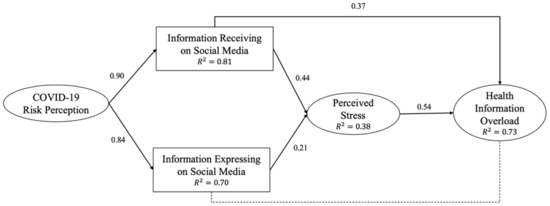 H4 posited that perceived stress was positively associated with HIO. The result showed a significant positive relationship between perceived stress and HIO ( = 0.54, p < 0.001), demonstrating that the greater the stress level, the greater the IO among the public, meaning that H4 was supported.