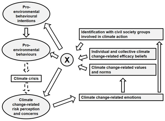 This recursive model has recently been applied in the context of protests for climate justice [40], and it has become a useful framework for explaining social and psychological determinants of climate action (e.g., pro-environmental behaviour directed towards reducing greenhouse gas emissions) [41]. Applying this model to the PCS would therefore suggest effects on increased intentions to engage in climate action by, inter alia, (1) increasing identification with civil society groups involved in climate action, (2) affecting emotions related to the climate crisis and (3) improving individual and collective efficacy beliefs.