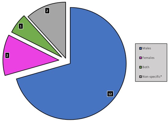 Sex distribution of study population/focus. * Studies that did not refer to sex explicitly within the study population/focus.
