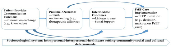 We thoroughly explored how provider–patient communication can affect PrEP care implementation status in the primary care settings through several pathways, including patient knowledge (e.g., perceived HIV risks), linkage to care (access to care, navigating assistance), therapeutic alliance (e.g., foresting relationship; supports from health professionals), and decision-making procedure (trust in health providers and system; shared understanding) [47,48,49].