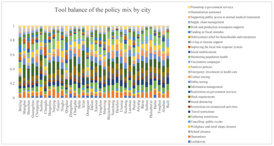 Tool balance of the policy mixes by city.
