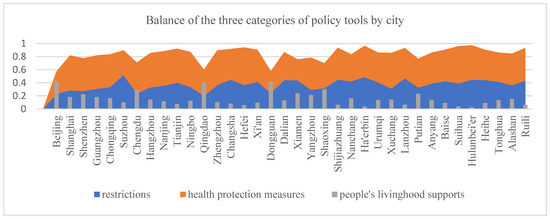 Balance of the three categories of policy tools by city.