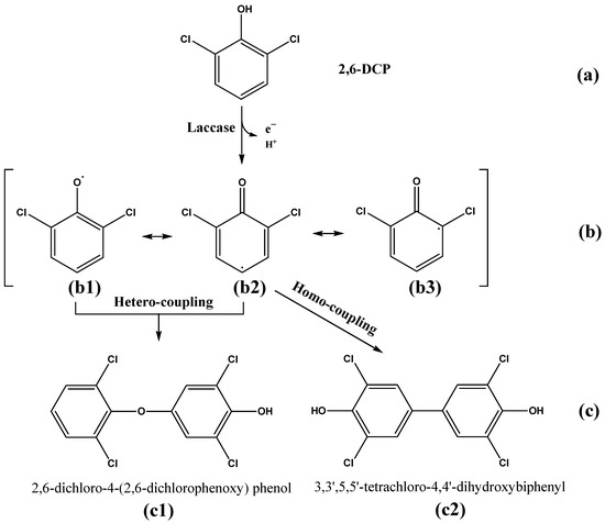 - Zhang, J.; Liu, X.; Xu, Z.; Chen, H.; Yang, Y. Degradation of chlorophenols catalyzed by laccase. Int. Biodeterior. Biodegrad. 2008, 61, 351–356. [Google Scholar] [CrossRef]