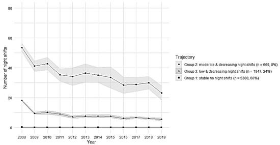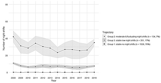 The following are available online at https://www.mdpi.com/article/10.3390/ijerph19138168/s1. Table S1: Mean frequency of night shifts from 2008 to 2019 in trajectory groups in samples 1, 2, and 3.