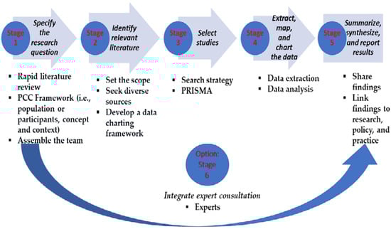 - Arksey, H.; O’Malley, L. Scoping studies: Towards a methodological framework. Int. J. Soc. Res. Methodol. Theory Pract. 2005, 8, 19–32. [Google Scholar] [CrossRef] [Green Version]
