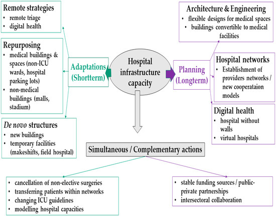 Ndayishimiye, C.; Sowada, C.; Dyjach, P.; Stasiak, A.; Middleton, J.; Lopes, H.; Dubas-Jakóbczyk, K. Associations between the COVID-19 Pandemic and Hospital Infrastructure Adaptation and Planning—A Scoping Review. Int. J. Environ. Res. Public Health 2022, 19, 8195. https://doi.org/10.3390/ijerph19138195