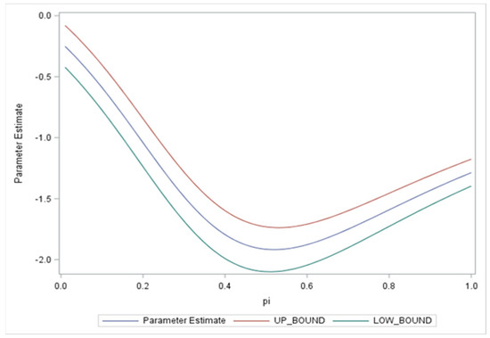 Upper and lower bands of HS parameter estimation for simulated values of π between 0 and 1.