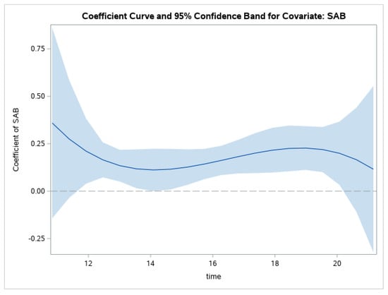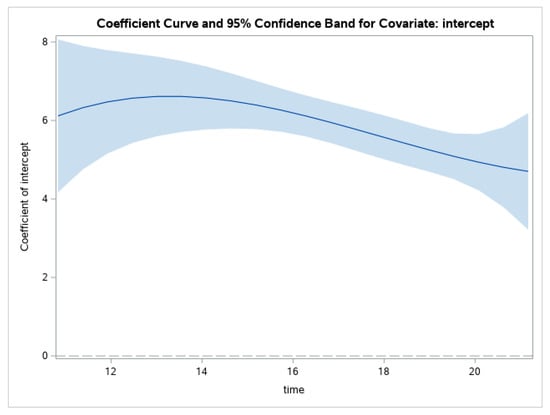 - Li, R.; Dziak, J.D.; Tan, X.; Huang, L.; Wagner, A.T.; Yang, J. TVEM (Time-Varying Effect Modeling) SAS Macro Users’ Guide (Version 3.1.1). University Park: The Methodology Center, Penn State. 2017. Available online: http://methodology.psu.edu (accessed on 15 April 2022).