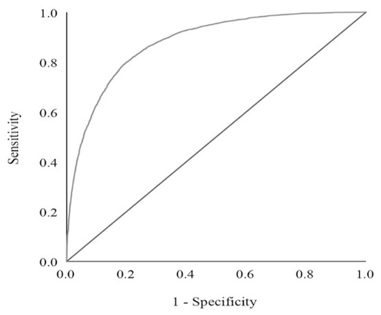Finally, we evaluated the effectiveness of the prediction model. First, the receiver-operating characteristic curve (ROC) was used to evaluate the model resolution by calculating forecast probability and the model’s sensitivity and specificity. Then, the calibration curve for the nomogram was validated with bootstrap self-sampling that was repeated 1000 times. The conformity of the predicted and actual probabilities was examined by a calibration curve and Hosmer–Lemeshow test.