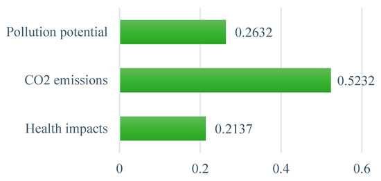 2 emissions are ranked as the most significant environmental sub-criterion to influence the decision of WtE selection in Ghana, with a priority weight of 0.523, followed by pollution potential of WtE technologies, with a weight of 0.263, and health impacts, with a weight of 0.214. Due to the increasing global concern about climate change impacts, many countries are making considerable efforts to reduce their greenhouse gas emissions, and Ghana is no exception. This concern is reflected in the experts’ opinion for the selections of an optimal WtE technology, such that priority should be given to a technology that can reduce CO