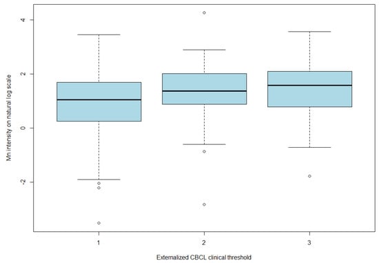 Mn intensity on natural log scale by clinical group of externalized CBCL.