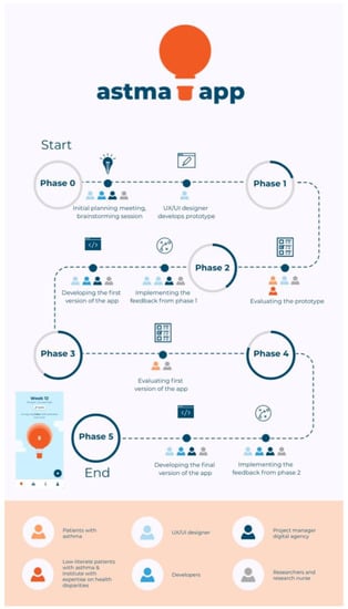 - Davis, S.R.; Peters, D.; Calvo, R.A.; Sawyer, S.M.; Foster, J.M.; Smith, L. “Kiss myAsthma”: Using a participatory design approach to develop a self-management app with young people with asthma. J. Asthma 2018, 55, 1018–1027. [Google Scholar] [CrossRef]